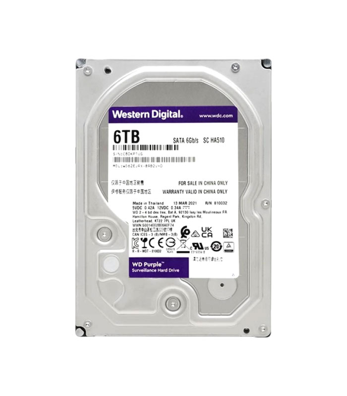 هارد دیسک اینترنال وسترن بنفش ظرفیت 6 ترابایت WD Purple | مناسب DVR و NVR با کارکرد 24 ساعته